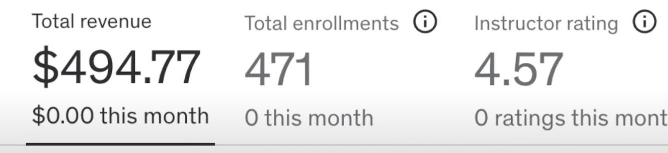 This depends on your course topic and demand. Technical courses and instructors with multiple offerings tend to earn the most. But even a single course like mine can bring in consistent cash!