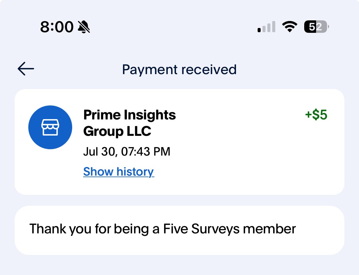 All in all, it took me about 1.5 hours to finish 5 surveys. I received the payment within just a few minutes directly into my PayPal account. Not bad at all!