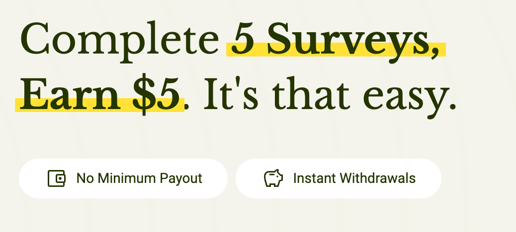 - No Minimum Payout: After completing the five surveys, you can cash out immediately.